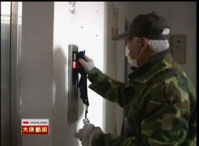在让胡路区温馨家园小区,记者发现,电梯排风都已开启,保洁员已对电梯内外进行消毒,特别是居民容易接触的按键,都用酒精进行了擦拭。
