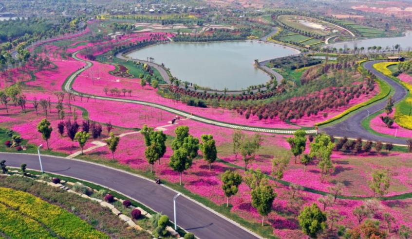 小镇植育两月有余的向日葵有十万余株,将在五月中旬起开放,花期约两周,除了传统的太平之眼、赛拉诺在内的黄色高杆向日葵品种外,还有白色恋人(白色)、醉云长(紫色)等异色观赏品种,配以五彩缤纷的美女樱、木春菊、紫柳打底,形成绚烂夺目的千亩花海。