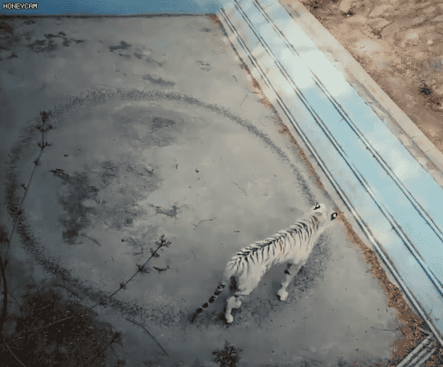 一老虎遛弯踩出圆形的视频