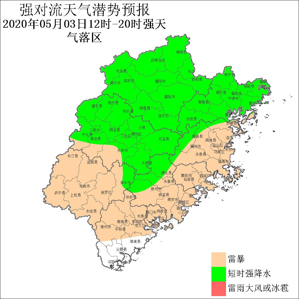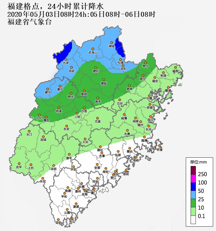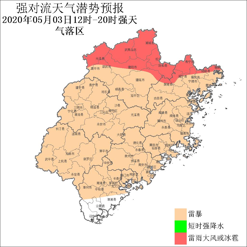 只有南平以及三明的部分地区有阵雨或雷阵雨