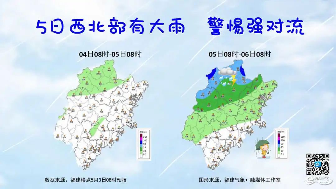5日,南平、三明、宁德、福州阴有阵雨或雷阵雨,部分中雨,局部大雨;其余地区多云,部分有阵雨或雷阵雨,局部有中雨。