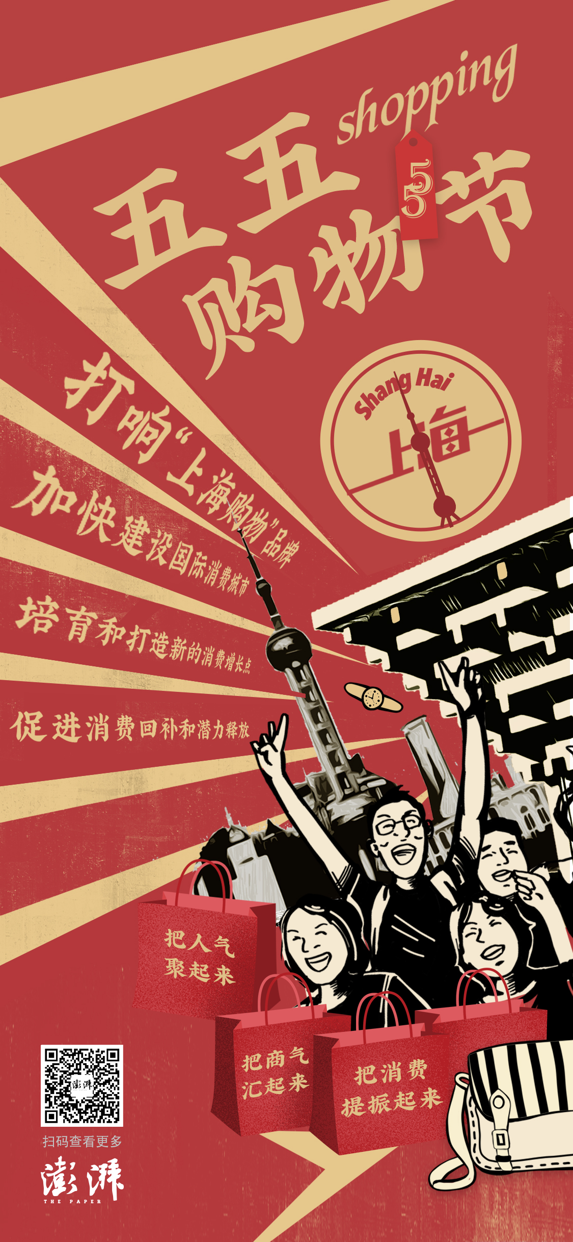 “千企万店、全城动员,日日有活动、周周有亮点”,在“五五购物节”的撬动下,上海将成为引领消费的风向标、消费升级的新引擎、令人神往的消费之都。
