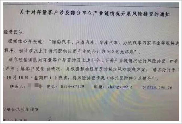 去年10月,网传的“平安银行展开内部风险排查”通知中,众泰也赫然在列。