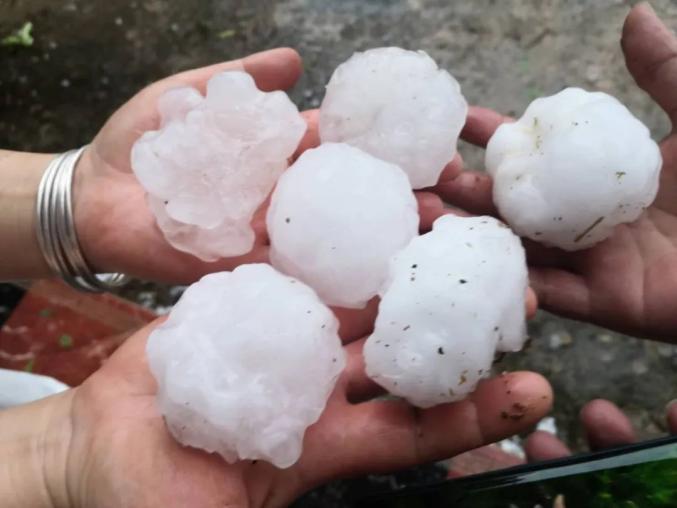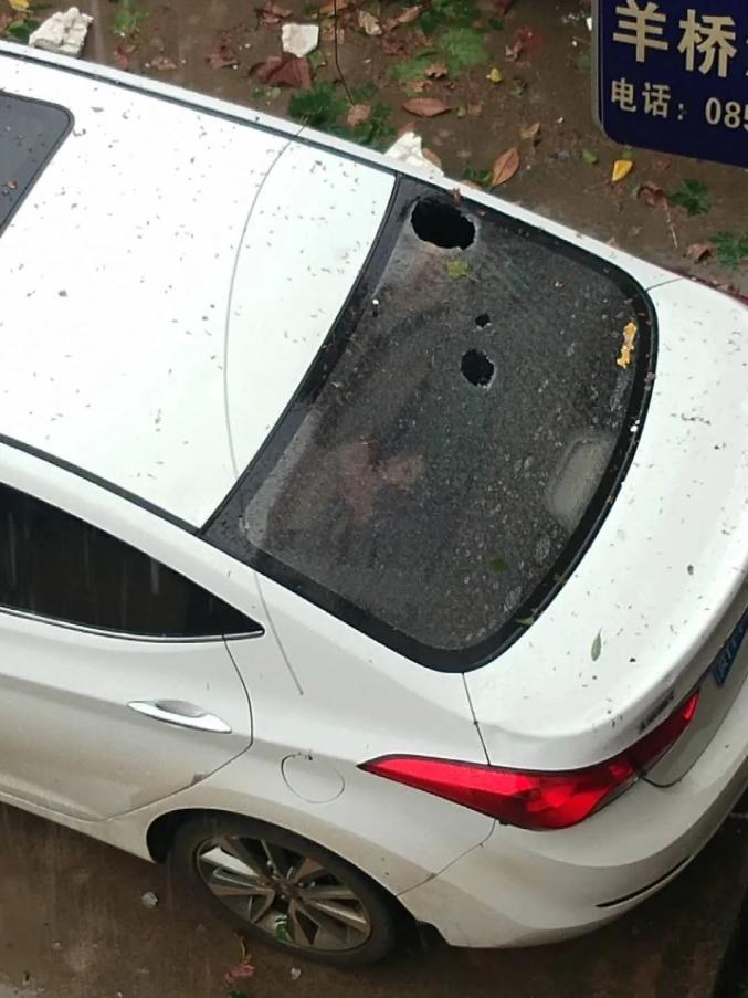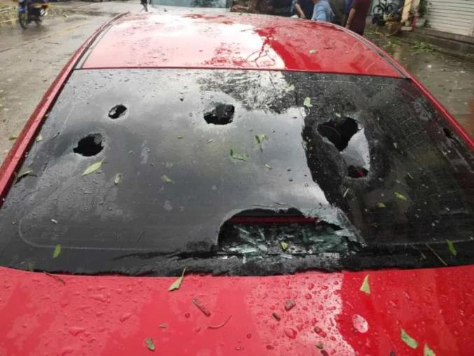 当地人称,冰雹直冲而下,有的比鸡蛋大,砸下后树枝纷纷掉落、房屋瓦片尽碎,汽车玻璃洞穿……有村民在冰雹降下后躲闪不及受伤。