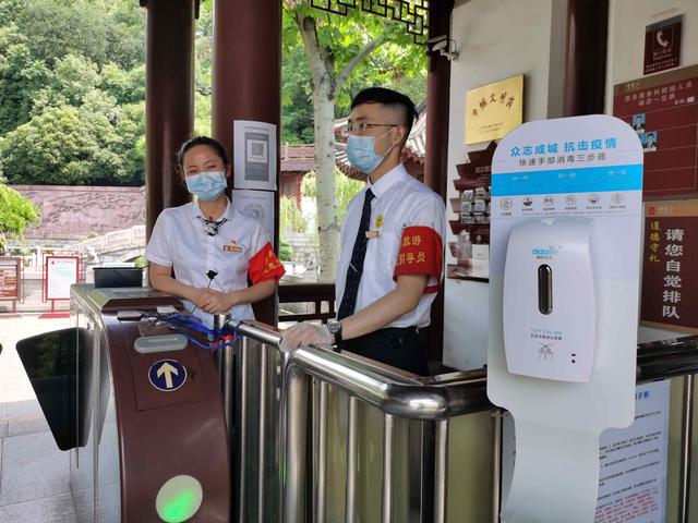 黄鹤楼公园入口闸机处放置了手部消毒感应喷雾装置