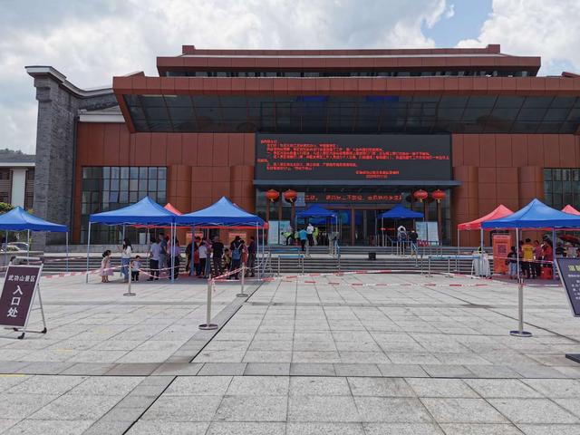 5月4日,下午1点整江西安福武功山景区游客服务中心门口,大家排队扫码有序进入服务中心
