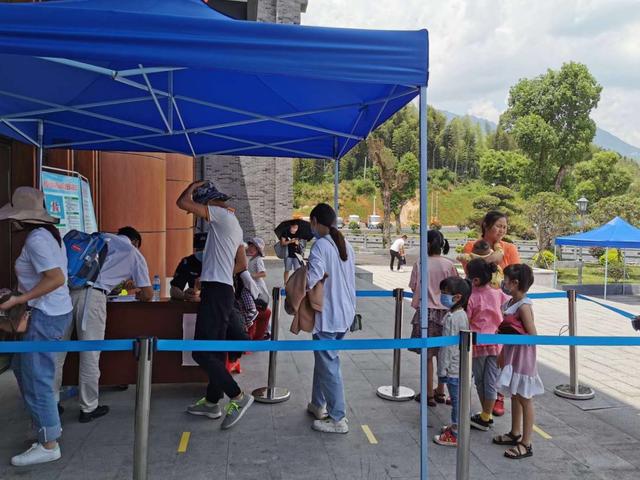 排队进行体温检测的游客中,不少人的衣裳已经被汗水浸湿,但队伍依旧有序地行进着。“虽然天气很热,想赶紧坐缆车上山游玩,但是景区这么做也是为我们负责,让我们很安心。”来自安福县当地的游客杨女士说。