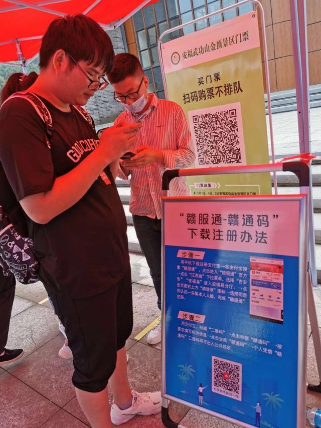 5月4日,在安福武功山景区,购票游客需注册登录“赣通码”进入景区