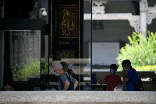 5月4日,参观者在广东民间工艺博物馆(陈家祠)休息处休息 许建梅 摄