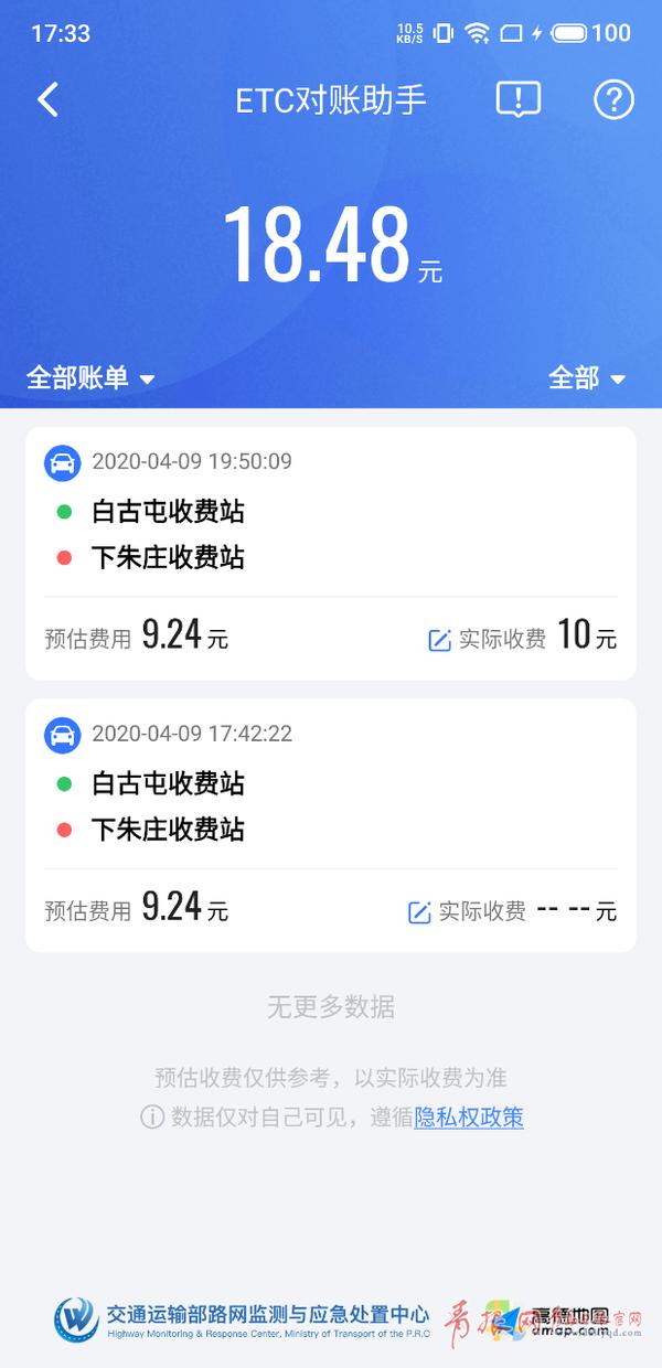 4月30日,交通运输部路网监测与应急指挥中心和高德地图达成合作,共同推出国内首个高速收费计算器——“ETC对账助手”。