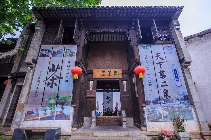 在这里,会有不一样的惊喜发现。你可以在这里品茗赏花,写字画画;也可以与小店主人共话惠山旧事,扯扯老空。看着缓缓流淌的河水,喝上半天的茶。