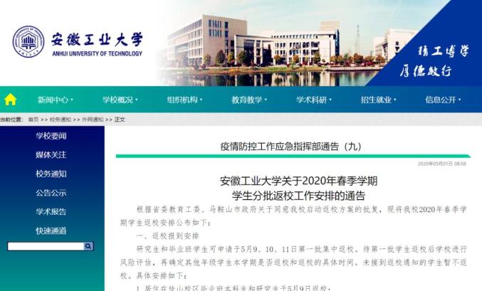 第一批学生返校时间为 5月9、10日,返校学生为符合返校条件的毕业班学生。