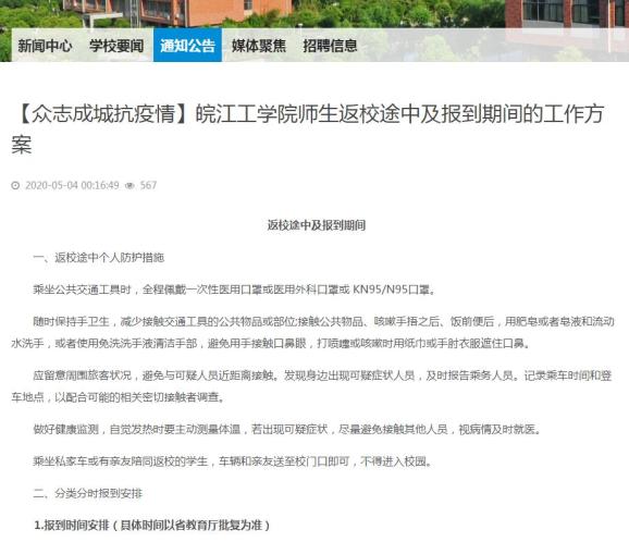 报到时间安排(具体时间以省教育厅批复为准)全校学生在全省高校正式开学后的第3天起同步报到, 错时错年级分批返校,严格控制校园人数。