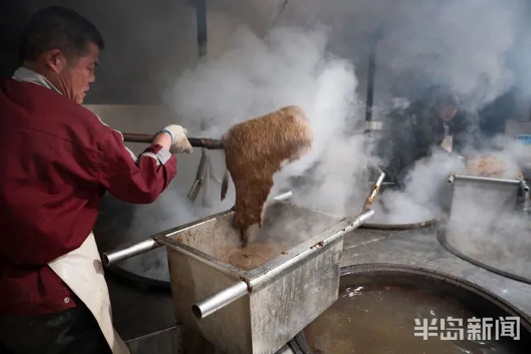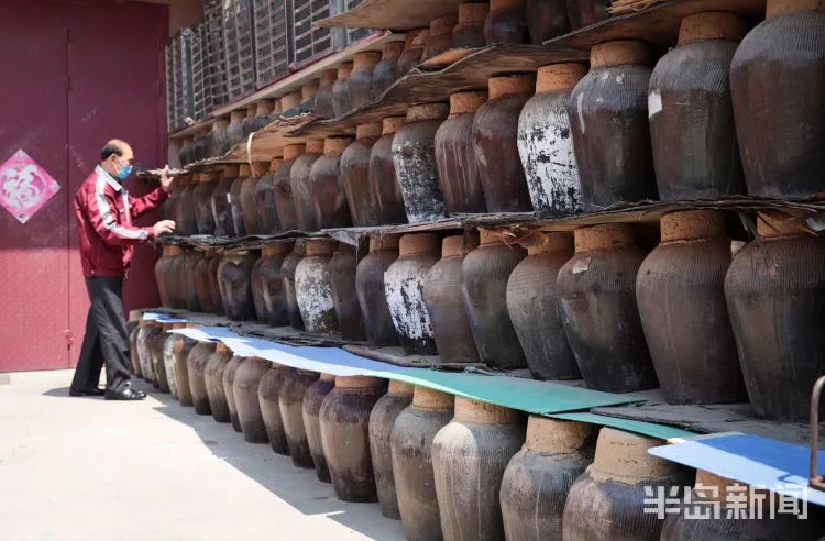 舞旗酒厂李玲说,压榨完老酒剩余的酒糟,经过蒸馏还可以制作出口味独特的白酒,这就是带有焦香味的即墨糠酒。