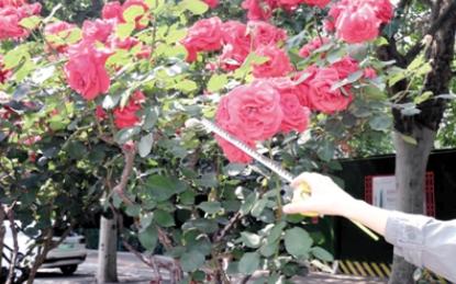 6)近日,郑州中原路、连云路、嵩山路等路段的树状月季热情绽放、美不胜收。其中中原路上的树状月季一株同时开出几十朵花,大的花冠超过15厘米。