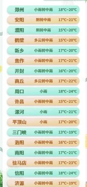 今日郑州:阴天有小到中雨 18/20 偏东风转东北风3-4级,空气质量指数:43,优。