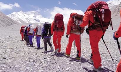 2)2020珠峰高程测量登山队出发仪式6日举行。30多名队员当日从海拔5200米的大本营出发,开启珠峰高程登顶测量。
