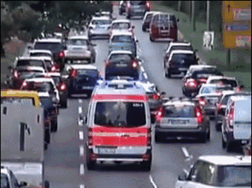 1、救护车的前方(含相对方向)车辆打起转向灯向两侧避让。