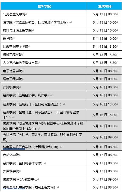 二、各学院拟定复试时间