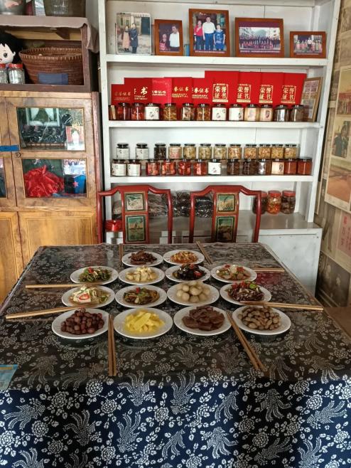 景宁东坑镇白鹤村地处浙西南美丽的飞云江源头,位于美丽乡村风景线县道白大线起点村。靠山吃山,因陋就简,这里的农家主妇,善于把山间常见的食材变成绝顶美味。农闲时节,她们把野生蕨菜、笋干、四季豆、土豆等新鲜蔬菜洗净,晒干,经过阳光、云雾洗礼的菜,辅以食盐、大蒜等香料,放入玻璃瓶或瓦罐,腌制成为一道道小咸菜。赵大娘咸菜馆是白鹤村最具代表性的专卖咸菜的特色饮食体验店,有野生蕨、竹笋、茄子干、黄瓜等30多种咸菜,或碧绿或金黄中,菜的鲜香和咸香扑鼻。