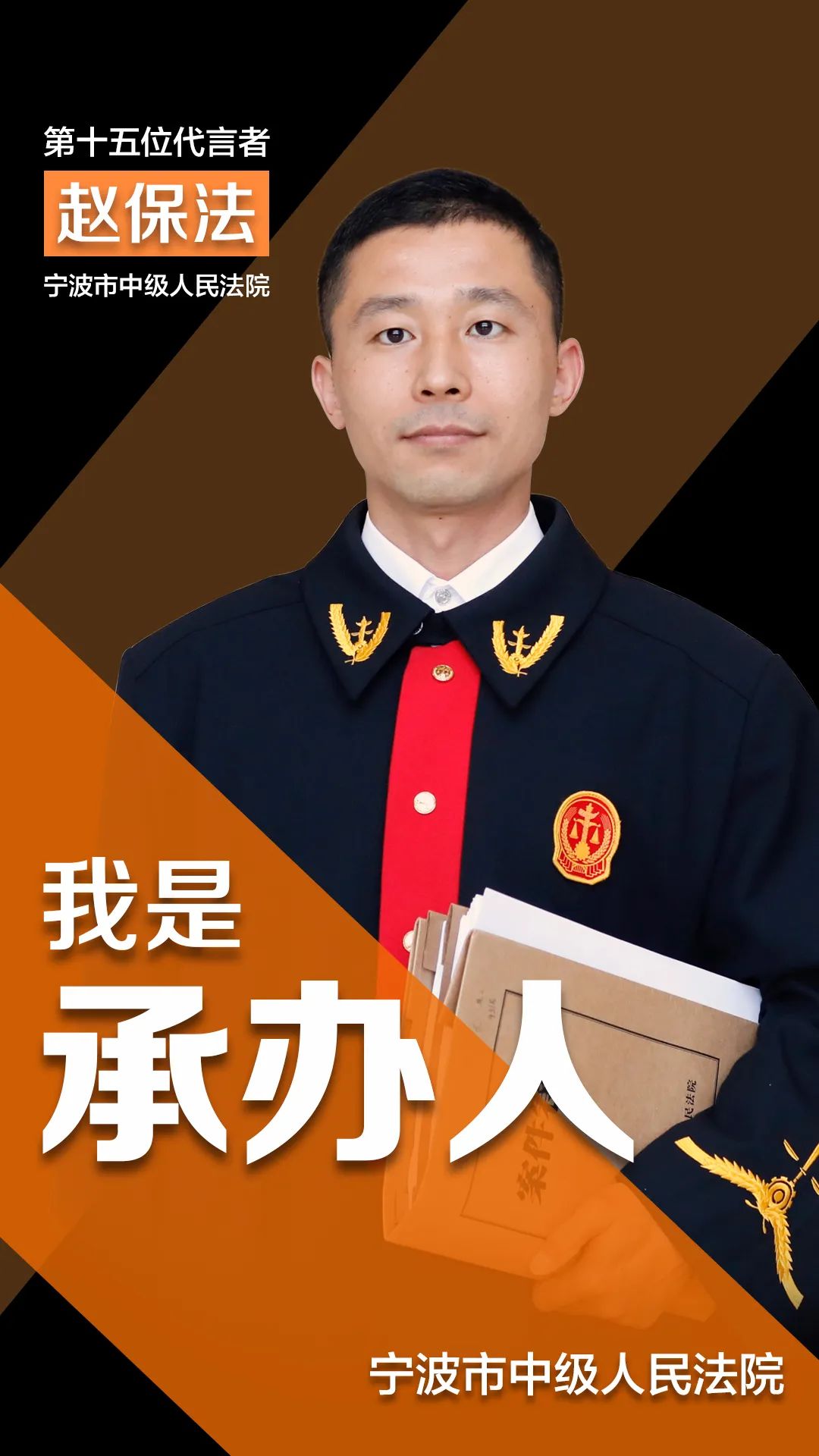 赵保法,男,1983年7月出生,民商法学硕士,2005年进入法院系统工作,2011年进入宁波中院工作,2017年入额,现为宁波中院民二庭员额法官、综合组组长。2018年被评为院优秀共产党员,2019年荣立个人三等功。系全国首例对移动微法院庭审进行同步网络直播案件承办人。