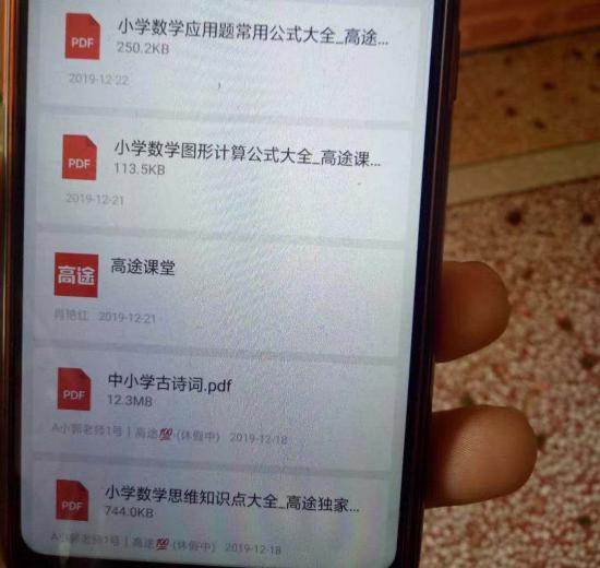 小飞妈妈展示一开始免费领的资料“过年前‘作业帮’和‘高途课堂’的题目文档还是分享就可以免费领的,结果没过多久,就追着要交钱了,‘作业帮’的人还一直打电话过来催。疫情期间本来跑货的人就少,生意不好做哪里有闲钱,但题目又不能不做啊。”好在小飞妈妈并没有苦恼多久,方方的妈妈看到她频繁分享的朋友圈,在确定延迟开学开始上网课后就找上了她。