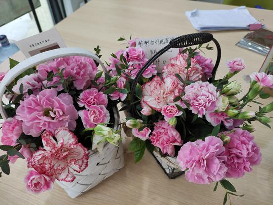 参与本次活动的,有年轻的妈妈带着女儿,也有阿姨带着自己的儿媳和孙女一起。在这其中,还有一位爸爸也带着可爱的女儿学习插花。他们齐心协力,修剪、插入花泥、调整样式,在一片花声笑语中,高低错落、疏密有致的康乃馨花束渐渐成型。按照自己的心意制作一份美丽的插花,年轻的爸爸一脸自豪,带着女儿迫不及待的想要回家送给自己美丽的妻子。而现场的妈妈们收到了来自贴心小棉袄稚嫩的感恩,不仅美丽芬芳,也是承载着浓浓的感情。