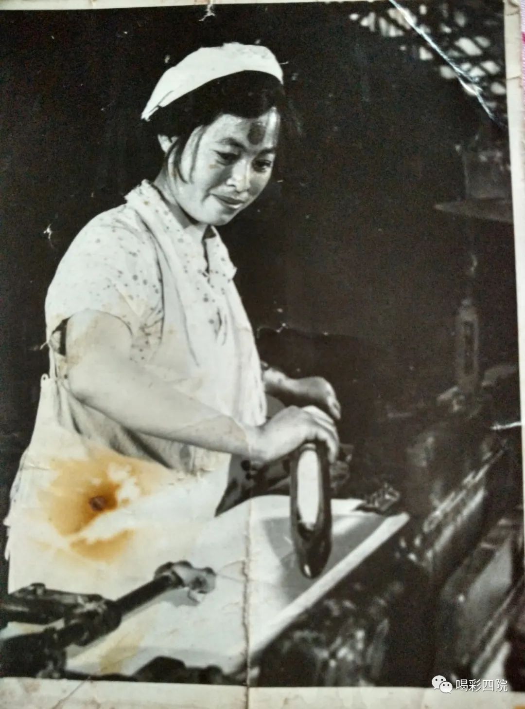 相片上的妈妈穿着沾着油污和线头的衣服正忙碌在纺织一线上,老式的纺织机器一片嘈杂,妈妈熟练地拿着梭子拨线、档线,认真工作的女人最美。