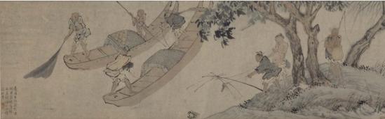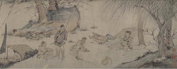 范仲淹笔下的渔夫,乘着一叶小舟出没在风波里,凶险无比;而明代画家周臣的《渔乐图》,却为我们描绘了渔民们的另一番生活景象。