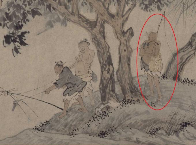 其中一个人正在搓绳子,他用脚蹬住一端,另一端用牙齿咬紧,这个细节动作描绘得生动传神,反映出画家对于生活的细致观察。