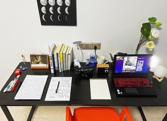 高子涵同学还会在桌上摆放一些和朋友们合拍的照片。学习时,高子涵时常会抬头看看他们。在疫情状态下,大家只能居家上网课,虽相隔千山万水,但同学们在心中都能放下一张“书桌”,都在某个角落默默拼搏着。