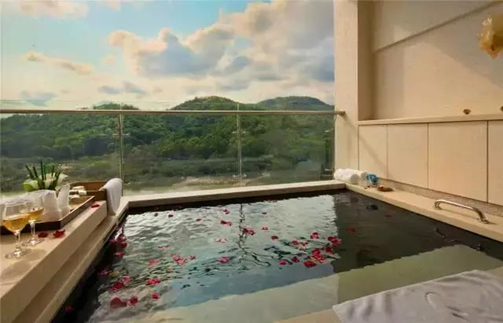 酒店最大的特色在于其独特的“空中温泉”。其户外温泉位于酒店的三层和四层,52个温泉池有露天和半露天两种,按照五行八卦分成6大温泉园区。