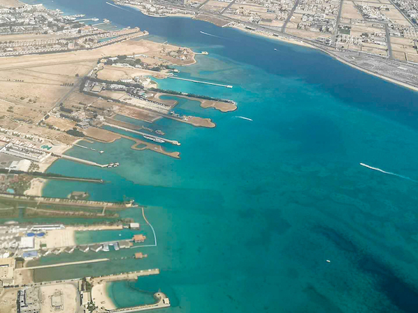 离开沙特的那天万里无云,飞机一路向北,我得以从空中再次观赏这片土地。刚起飞时,道路、房子和车辆星罗棋布在黄色的土地上,随后,除了在塔布克沙漠附近出现过圆形农场外,目之所及便是无边无尽的茫茫沙海。
