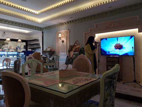 聊了一会后,他们让服务员准备卡拉OK。女演员告诉我:“我们经常会到这家咖啡店来唱歌。”