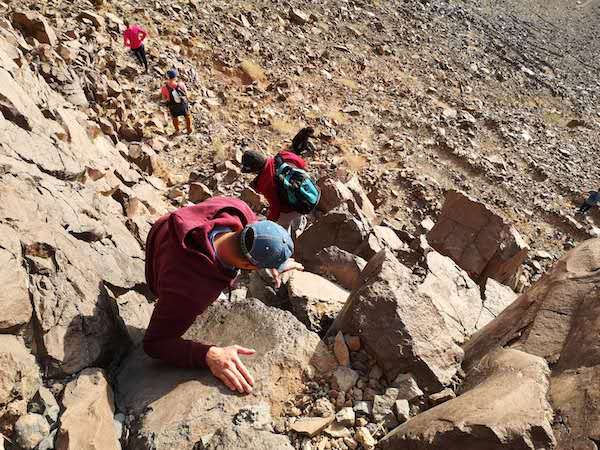 穿着防滑的徒步鞋,大部分碎石路对我来说都比较好走,只有少数几处峭壁需要手脚并用地攀爬。看得出来,大部分队友并没有丰富的户外经验,在某些峭壁堵了很久。