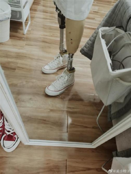 2017 年的时候,橙子终于开始尝试裸穿义肢,露出钢铁的脚踝,不畏惧旁人的目光。
