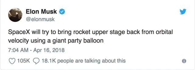 非常遗憾的是货运飞船的充气结构在再入地球大气层阶段出现问题。其实这项技术并不简单,因为早在2018年,spaceX公司老板马斯克就发了一条神秘的twitter,引发了网友无限猜想。