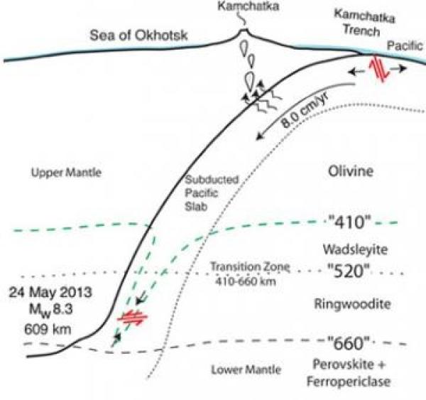震源深度超过300km的被称为深源地震(与此相对应的深度0~70km的称为浅源地震、70~300km的为中源地震)。人类迄今为止记录到的最大的深源地震,是2013年5月24日鄂霍次克海8.3级地震,震源深度约为609km。从地震波记录的一般特征上,这次地震与浅源地震并无不同,对于地下深部巨大的围压下发生如此大的脆性破裂,目前尚未有广泛认可的科学解答。