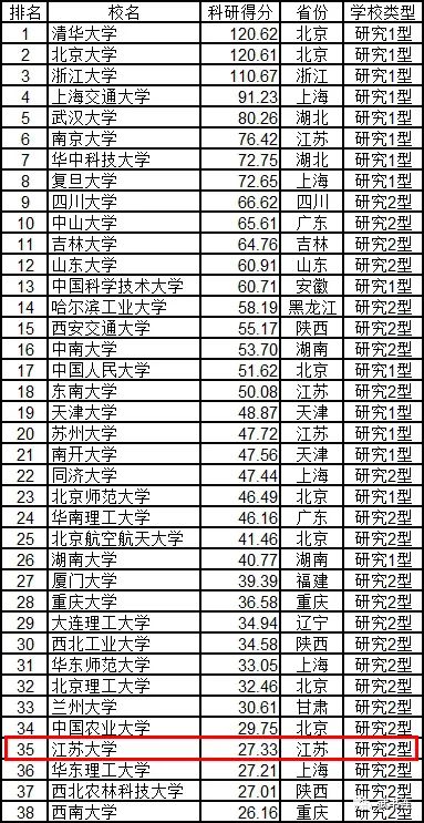 根据被评价高校科研得分的降序排列,位于前5%的38所高校为研究型大学,我校连续第3年进入研究型大学榜单。
