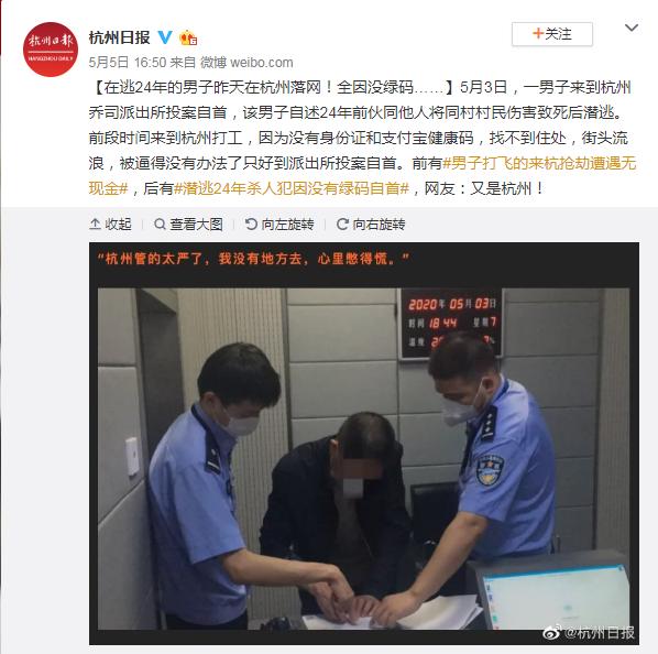 《"没有绿码,我走投无路了!" 杀人犯逃亡24年后自首》杭州日报