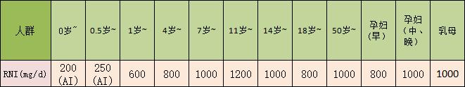 下面为大家附上一份我国居民膳食钙的推荐摄入量,小伙伴们可根据自己的年龄和情况对号入座。