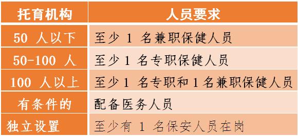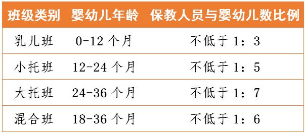1、应当根据场地条件、收托婴幼儿规模,合理配置综合管理、保育照护、卫生保健、安全保卫和后勤保障等工作人员。保育人员与婴幼儿数的比例: