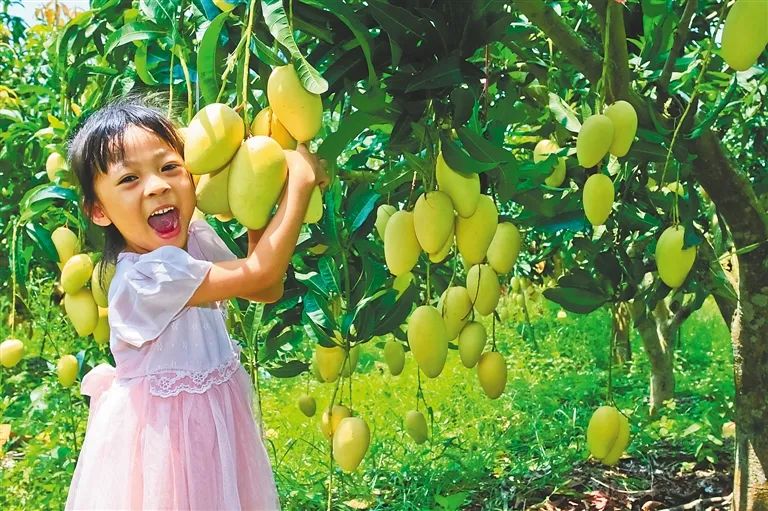 眼下,正是吃贵妃芒的好时节。海南的昼夜温差和充足的阳光,让贵妃芒积累了更多的水分和糖分。贵妃芒的果核很薄,整颗芒果几乎全是果肉,汁水饱满、香甜浓郁,一口咬下去,满嘴清香甜蜜。想要吃到最美味的芒果,当然要到农场里采摘树上熟的。