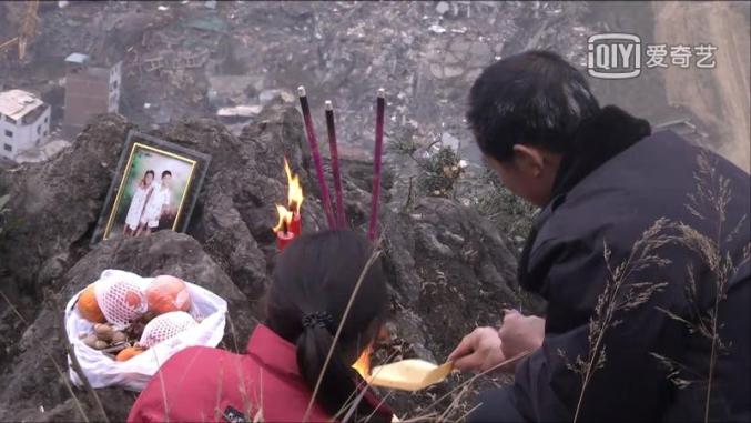 震后不少失独家庭都在准备再生一个孩子,失去女儿的彭孝全夫妇很难从悲伤中走出来,不想再要一个。他们在废墟里给女儿立了墓碑,那条路被拦住以后,就在山上朝着县城祭拜。为了过更好的生活,妻子李晓蓉外出打工赚钱。