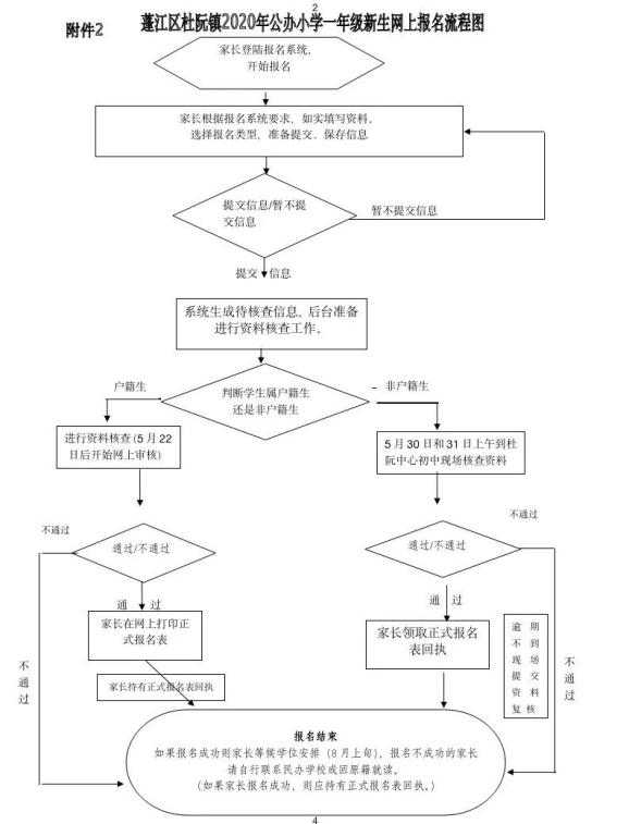 附件2:蓬江区杜阮镇2020年公办小学一年级新生网上报名流程图