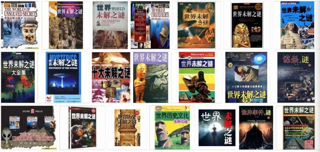 后来才发现,在中国的图书界,原来曾经流传过大概上百种出版社、编辑、封面装帧都不尽相同的《世界未解之谜》。不过它们都共享同一个名字,以及同一个匪夷所思世界故事体系。