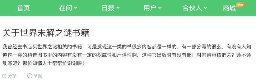 事实上,早就有好奇网友在赛博世界里提出疑问:《世界未解之谜》系列图书内容大都差不多、而且部分写得玄之又玄,是不是假书: