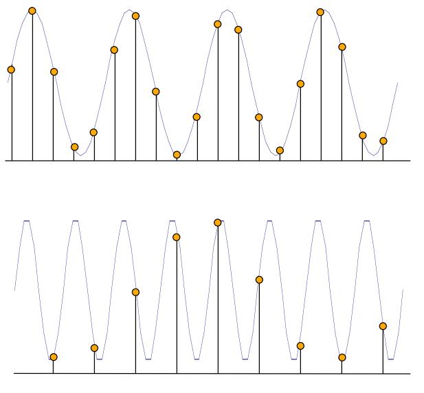 假设有一个你想以规律间隔采样的时间信号。这些采样点之间的时间长度可能导致最终采样信号出现显著区别。下图 6 通过采样正弦波形做出了展示: