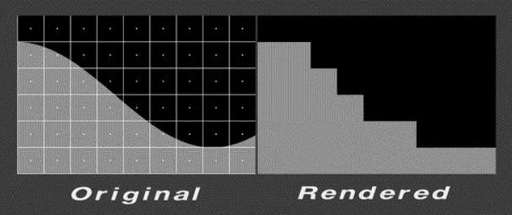 Catmull 详细讨论了前置滤波技术。如上所述,在区域采样中,像素强度与每个像素和显示对象的重叠区域成正比。