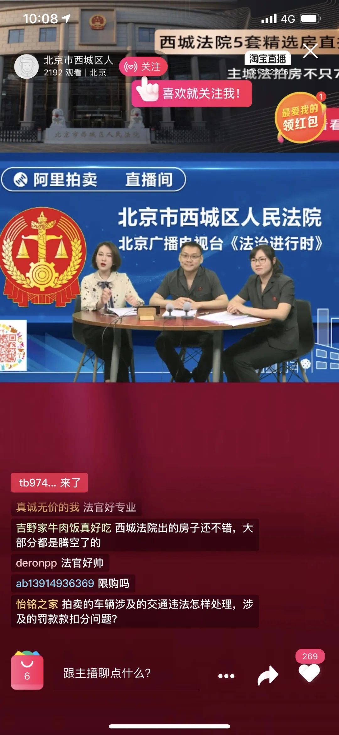 据悉,此次活动中国长安网、北京政法、北京电视台、北京西城法院官方微博全程同步直播,共吸引了72.3万位网友关注,仅阿里拍卖直播平台就获得7638次点赞,展示的标的物围观数量高达18.08万次,获得了广大网友的高度认可。网友@真诚无价的我表示:“直播好专业,而且好看,讲解很详细。”“拍房子是大事,本来因为疫情没法现场看样,心里七上八下的,今天直播我关注的房子细节看了个够,我也打定主意了,谢谢法官!”直播临近结束时,网友@自由的风如是评论。